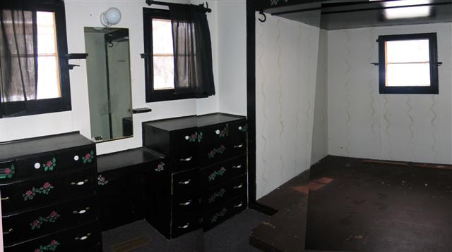 Larger bedroom has built in drawers. |