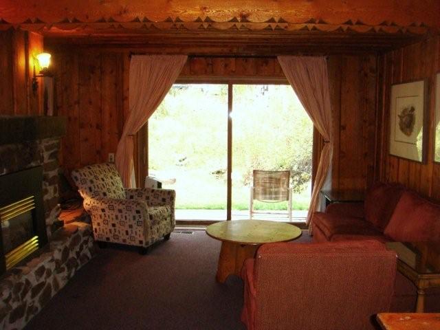 | Size: 925 sf, 2 bedroom, 1.5 bath. located beside a stream on lawns, under towering fir trees, with sounds of stream from both bedrooms. This little gem features a converted gas stone fireplace, 8 foot slider to patio, outdoor firepit, and privacy. Includes parking for 2 cars. $1500/month plus gas/electric. |