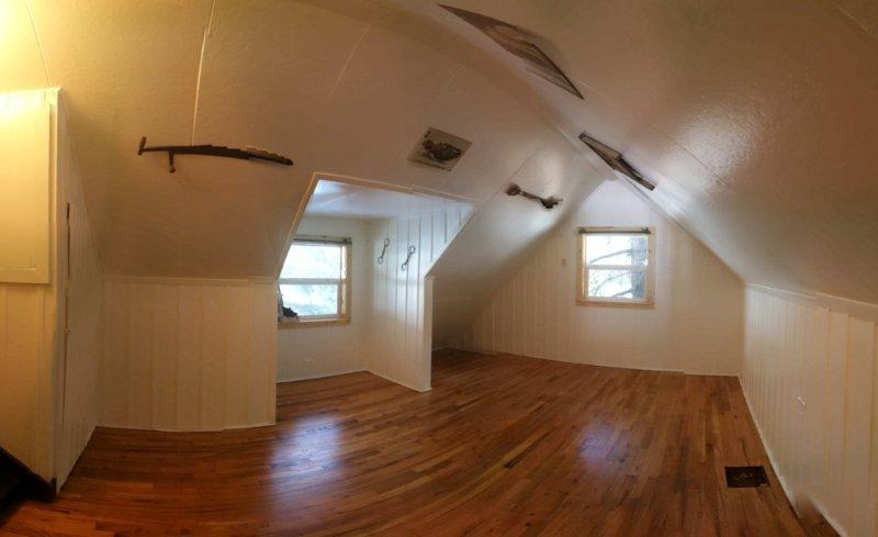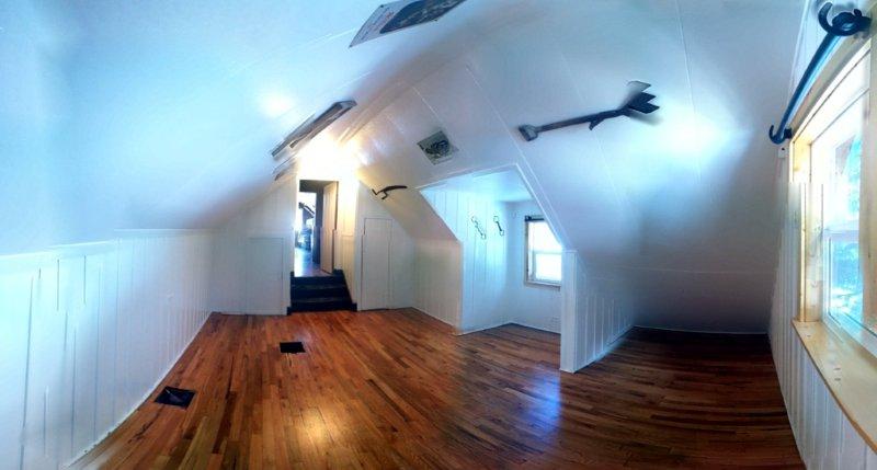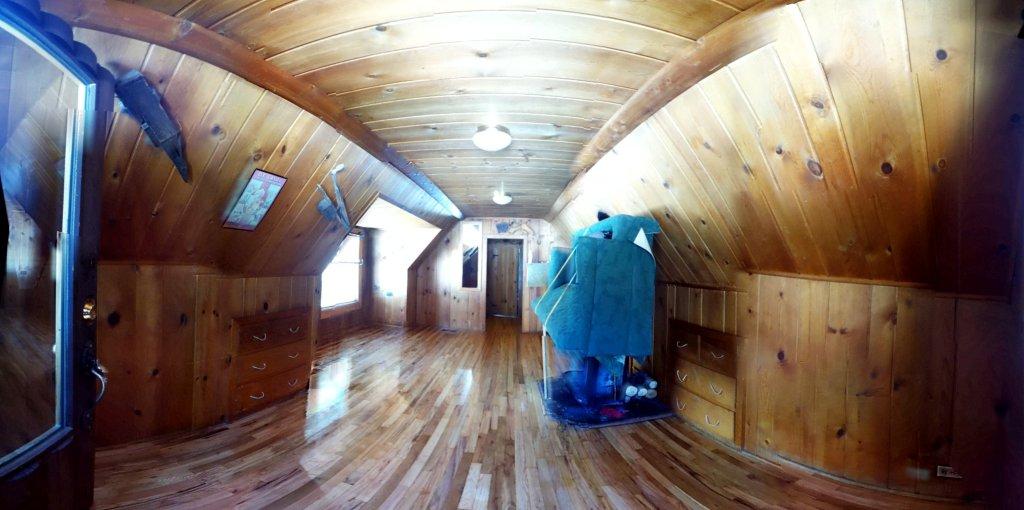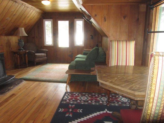 whole upstairs of the Homestead cabin, and it has views of a pond and lawns. |