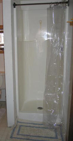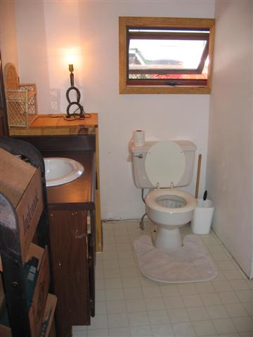 Below is the bathroom, which is accessible from both apartments. It has two entrances, so that when someone is using it, the other apartment is locked out.